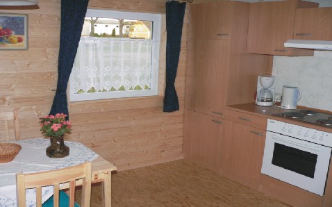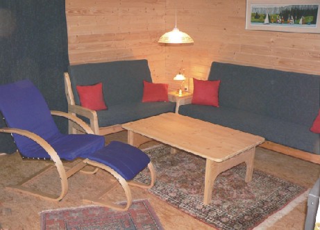 Das Ferienhaus wurde 2009 im skandinavischen Stil aus Holz gebaut und ist komplett mit allem nötigen Inventar zum Wohnen ausgestattet. Im Erdgeschoss sind Wohnzimmer mit Terrasse, Küche mit Essplatz und Duschbad mit WC. Im Obergeschoss sind zwei Schlafzimmer für 4 bis 6 Personen, eines mit Südbalkon. Insgesamt ca. 65qm Wohnfläche.