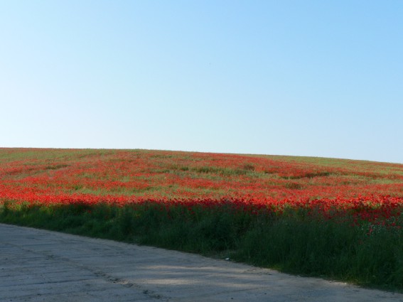 Rechts: Im August allgegen-wärtige Mohnfelder.