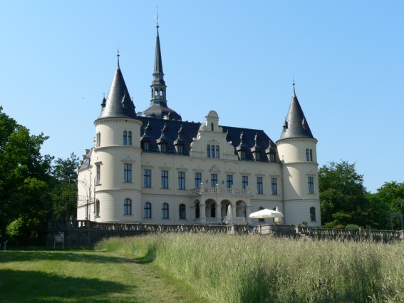 Schlosshotel Ralswiek und die Kulisse der dortstattfindenden Störtebeker-Festspielen.